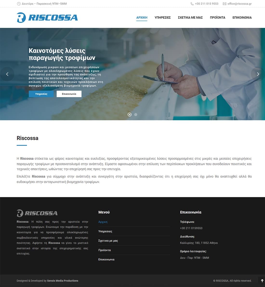 The Sensis Media took on the design and development of the website riscossa.gr, providing a fully functional and aesthetically refined platform. Our goal was to create a professional website that highlights the company’s identity and offers easy access to its services and products. Through clean lines and clear information, visitors can immediately learn about the solutions offered by Riscossa and navigate comfortably through all pages.