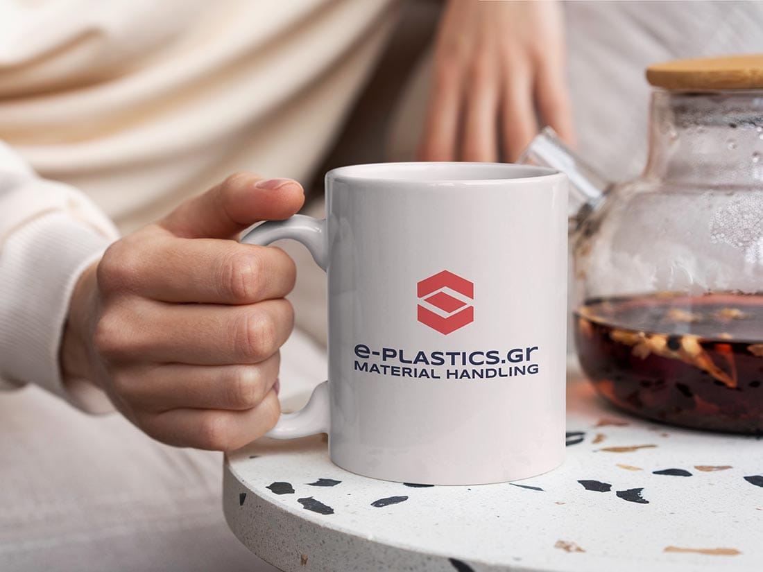 For the logo of e-plastics.gr, a company specializing in trading plastic containers and bins, the red symbol embodies the heart of the activity – reliable and sturdy storage solutions.