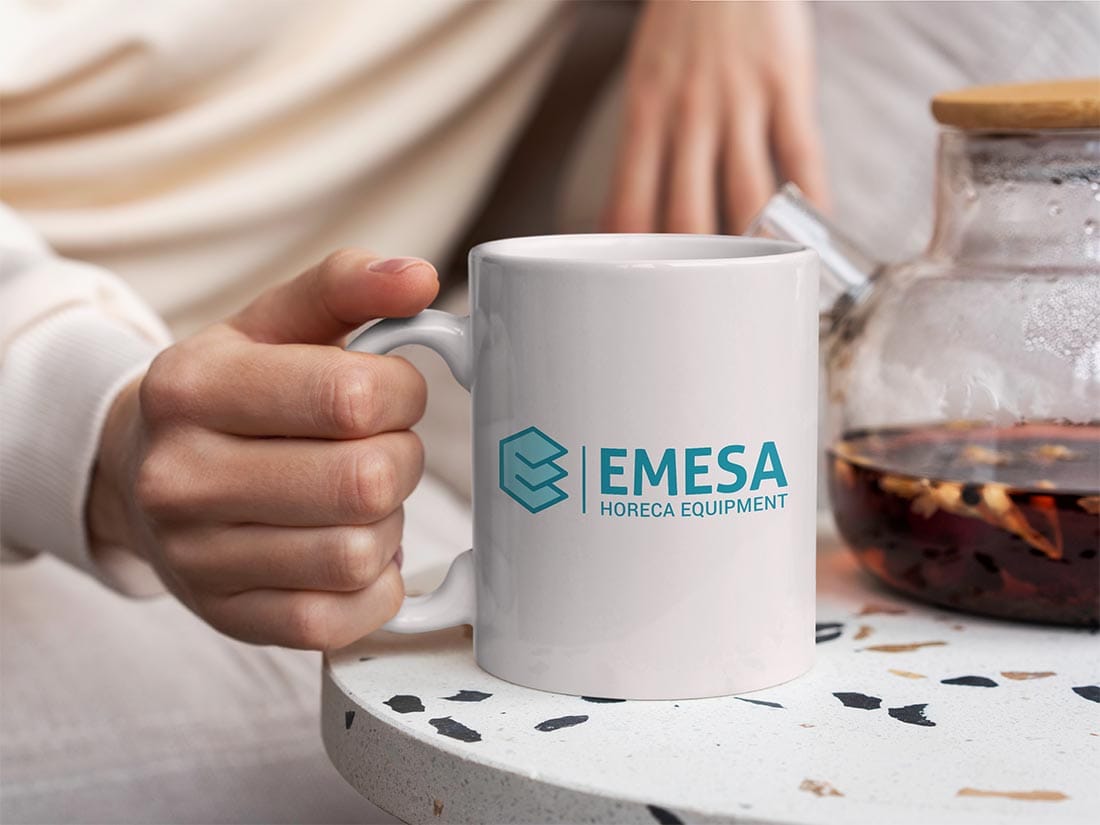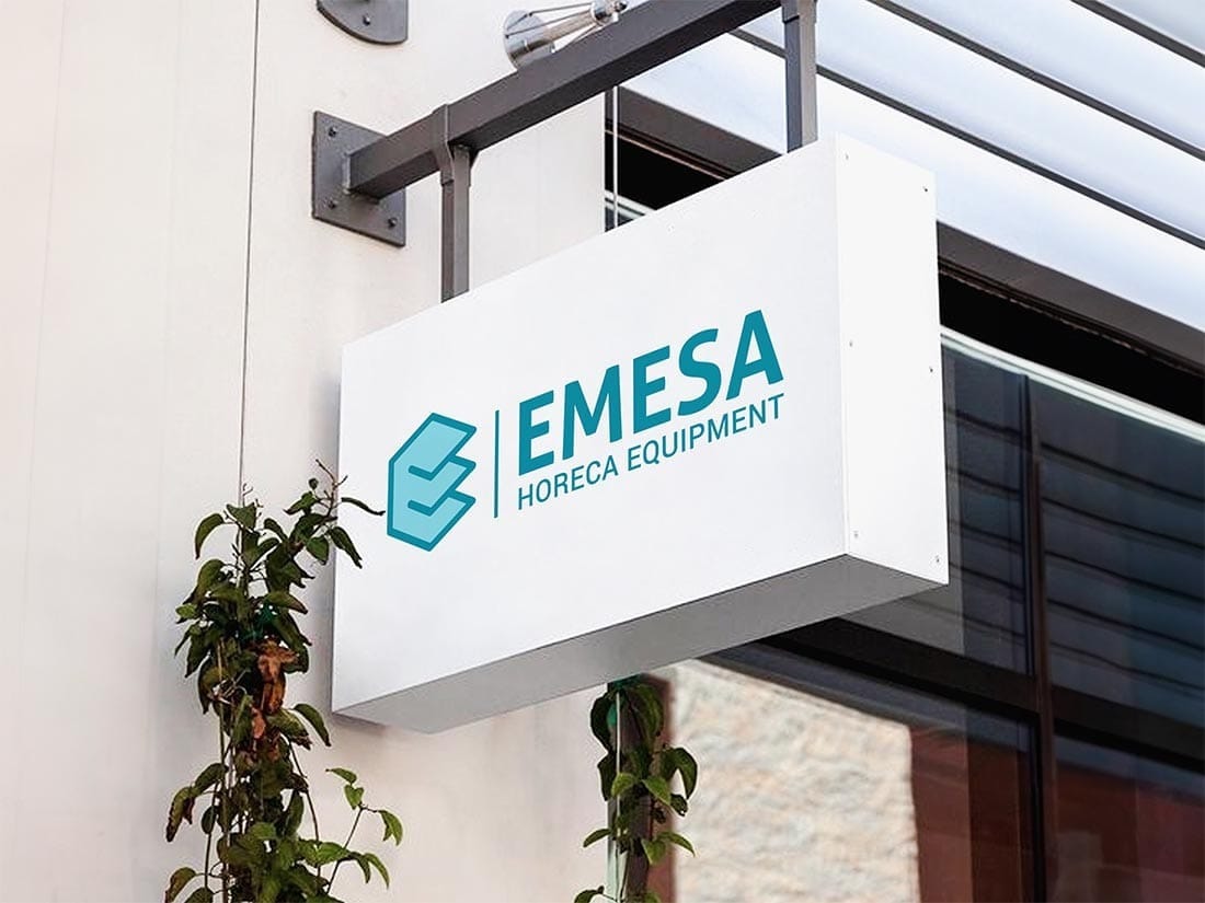The logo of EMESA captures the company’s commitment to providing quality equipment for the catering and hospitality industry. The design element of the isometric cube on the left, depicting three shelves, symbolizes EMESA’s expertise in customized shelving solutions and HORECA equipment. The clean and modern typeface in light blue conveys professionalism and reliability.